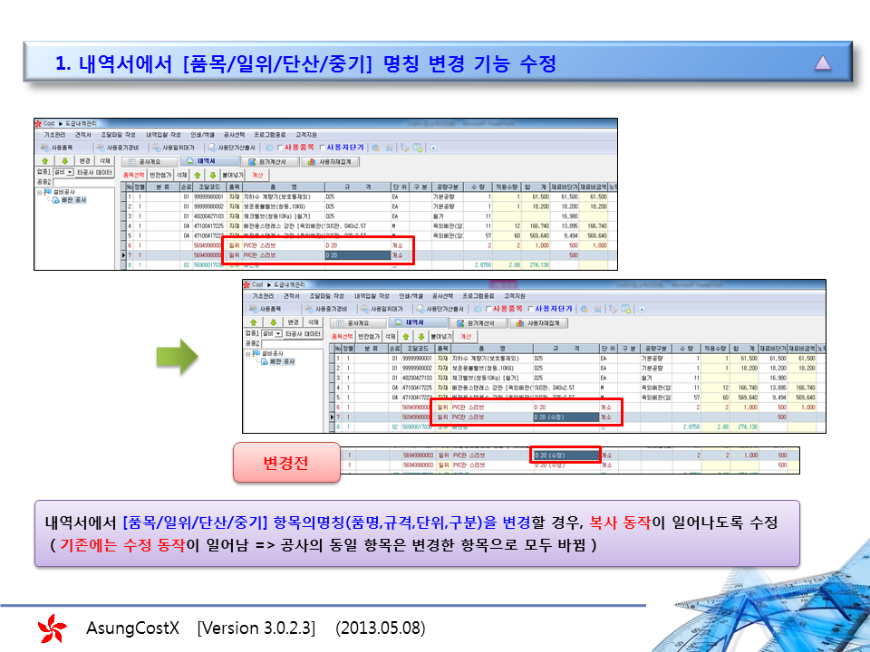 ³»¿ª¼¿¡¼ [ǰ¸ñ/ÀÏÀ§/´Ü»ê/Áß±â] ¸íĪ º¯°æ ±â´É ¼öÁ¤