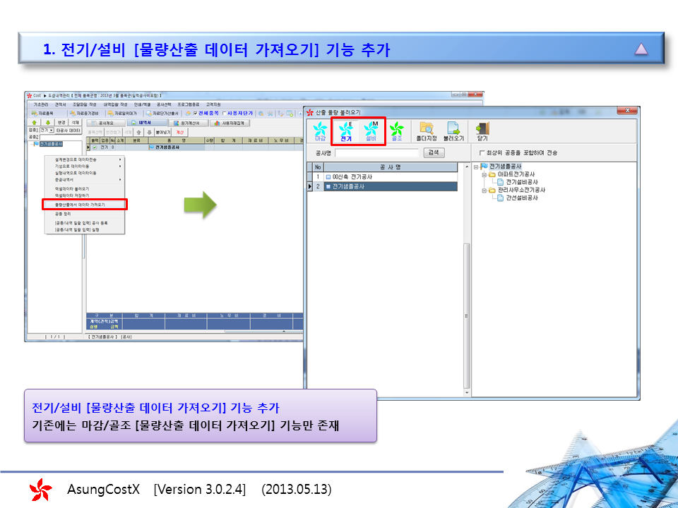 | Àü±â/¼³ºñ°ø»ç¸¦ ºÒ·¯¿Â °ø»çÀÎ °æ¿ì Cost¿¡¼ Ç׸ñ ¼öÁ¤½Ã, Àü±â/¼³ºñ°ø»çµµ ¼öÁ¤µÇµµ·Ï ¹Ý¿µ | |